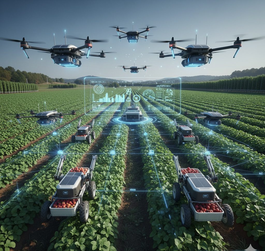 - Vehículos autónomos en la cosecha y logística.