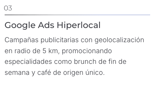 El desafío: Una cafetería recién inaugurada necesitaba diferenciarse en un mercado altamente saturado. Contaban con una web básica sin optimización y cero presencia en redes sociales, dependiendo únicamente del tráfico peatonal.