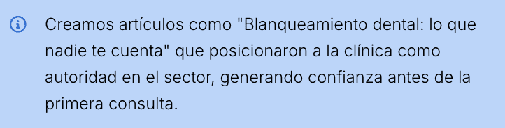 Insight clave: El contenido educativo SEO combinado con segmentación publicitaria precisa permite a pequeñas clínicas competir efectivamente contra grandes marcas establecidas, creando autoridad y confianza antes del primer contacto.